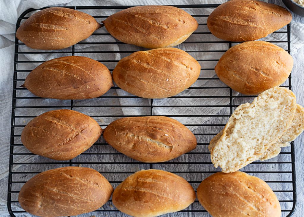 Una vez fuera del horno, deja enfriar sobre una rejilla. Están deliciosos templados, pero también puedes congelarlos y tener pan listo en cualquier momento.