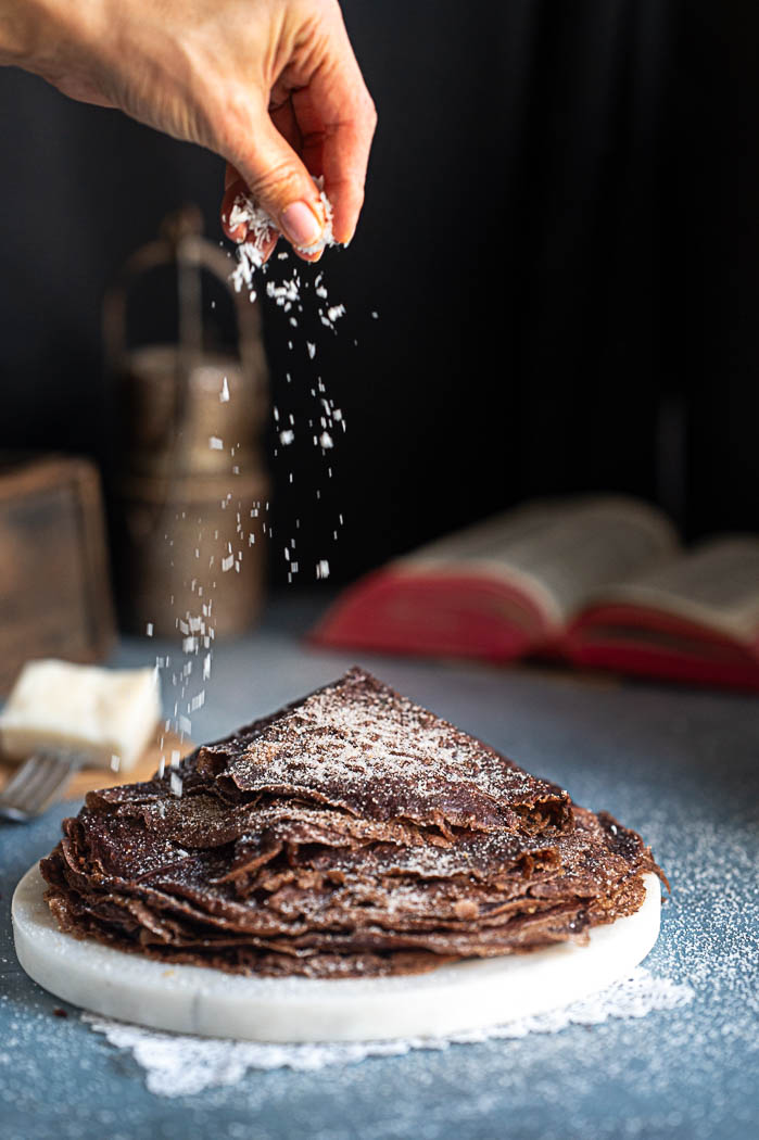 - Coloca cada filloa terminada sobre un plato llano, apilándolas una encima de otra para que mantengan el calor y la textura.