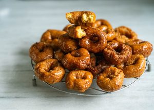 Los melindres son de esos dulces que huelen a cocina de casa: masa sencilla, fritura rápida y un baño de almíbar que, al enfriar, se vuelve blanquito y los deja tiernos varios días. Esta receta viene de una libreta antigua de Ourense, y tiene ese punto de anís y aguardiente que los hace inconfundibles. Si te gustan las rosquillas de siempre, aquí tienes una versión que no falla.