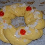 Toca hacer roscón de reyes, y llevo años «peleándome» con él para dar con la auténtica receta tradicional gallega. La de verdad y cómo lo hacía mi abuela para tener un roscón con la miga húmeda y esponjosa incluso dos días después. Es más, me atrevo a decir que está mejor al día siguiente, pues el sabor se habrá asentado e intensificado. En Galicia es tradición hacer el roscón en reyes, en Pascua y por las fiestas. Antes las roscas las amasaban, las dejaban levar y luego las bajaban de nuevo, con ello subían dos o tres veces, y luego ya las horneaban. Yo hice la masa El miércoles por la noche, la dejé en la nevera para retardar el levado y ajustarlo a mi tiempo y así no adaptar mi vida al roscón. El jueves, a la una del mediodía, una mano generosa lo quitó del frigorífico para que se atemperara la masa. Llegue del trabajo, hice el roscón por la tarde y me fui a recoger al peque al cole. Ahí se quedó, solo en casa y libre para ir fermentando (unas 3 horas) «Et Voila”, a las 7 cuando llegamos estaba perfecto, había subido y solo faltaba el último paso, y quizá el más importante, la cocción. Lo pincelé, encendí el horno y mientras bañaba a los enanos y se hacía la cena, el roscón se iba cociendo. Los 20 minutos de siempre, a 180 grados. El aroma en toda la casa era maravilloso y el sabor y la textura perfectos.