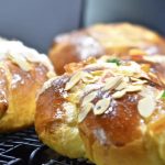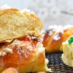 Horneamos los roscones a 180 °C con calor arriba y abajo 17-20 minutos, ni uno más ni uno menos en mi horno. Como cada horno es diferente, estos tiempos son orientativos, así que mejor controlarlos y cuando estén dorados los quitamos, pero tener en cuenta que si se pasan mucho estarán más secos. Cuando los quitamos estarán blanditos y puede parecer que están crudos, pero nada más lejos de la realidad, esperar que se enfríe y veréis que están jugosos y deliciosos.