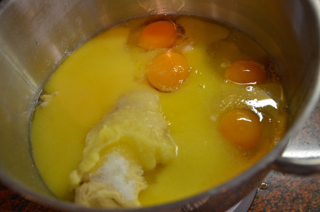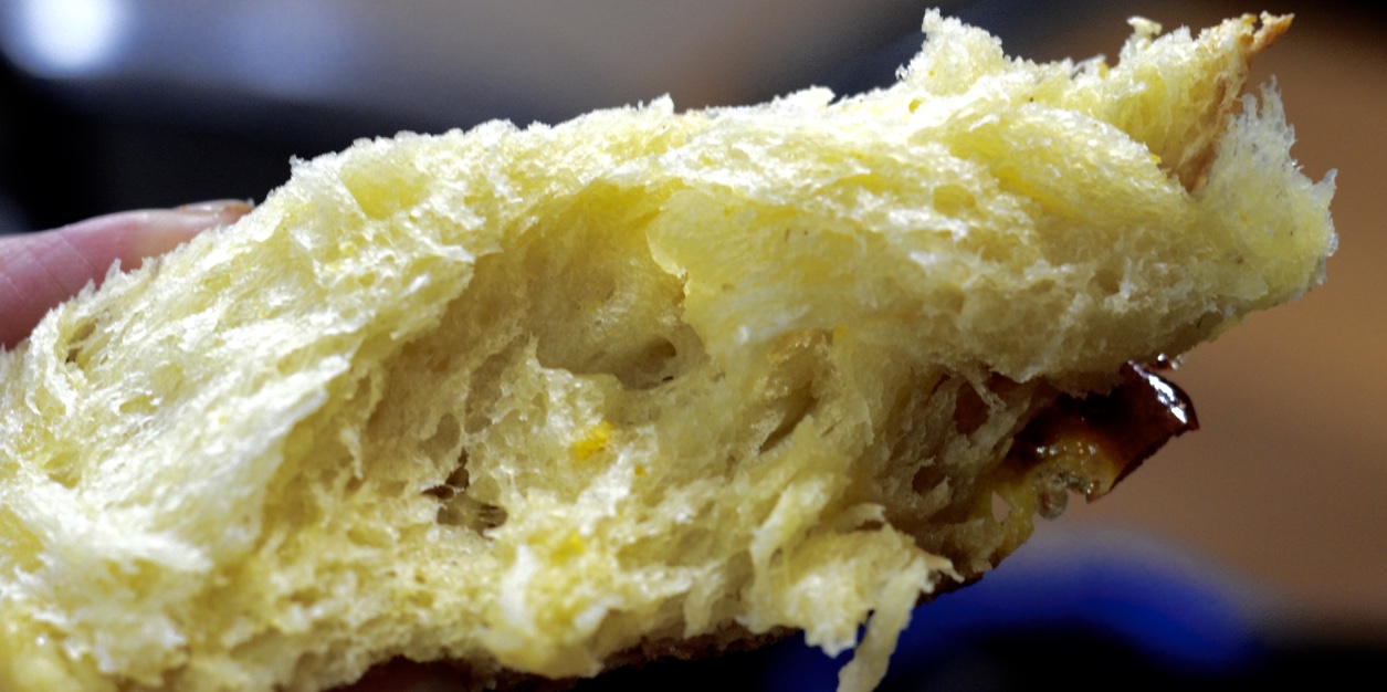 Ponemos la harina en forma de volcán y echamos los ingredientes excepto la mantequilla en el medio. Amasamos energéticamente hasta obtener una masa elástica y que se despegue de las manos. No todas las harinas son iguales, así que quizá necesitéis un poco más, pero con cuidado, porque si ponéis mucha harina os saldrá menos esponjoso. Como sabéis, la masa hay que trabajarla mucho, así que después de un buen rato y que se haya desarrollado el gluten, añadir los 50 g de mantequilla y continuar amasando hasta que esta se integre bien en la masa.