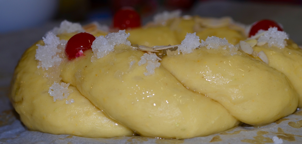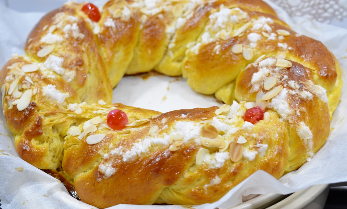 Toca hacer roscón de reyes, y llevo años «peleándome» con él para dar con la auténtica receta tradicional gallega. La de verdad y cómo lo hacía mi abuela para tener un roscón con la miga húmeda y esponjosa incluso dos días después. Es más, me atrevo a decir que está mejor al día siguiente, pues el sabor se habrá asentado e intensificado. En Galicia es tradición hacer el roscón en reyes, en Pascua y por las fiestas. Antes las roscas las amasaban, las dejaban levar y luego las bajaban de nuevo, con ello subían dos o tres veces, y luego ya las horneaban. Yo hice la masa El miércoles por la noche, la dejé en la nevera para retardar el levado y ajustarlo a mi tiempo y así no adaptar mi vida al roscón. El jueves, a la una del mediodía, una mano generosa lo quitó del frigorífico para que se atemperara la masa. Llegue del trabajo, hice el roscón por la tarde y me fui a recoger al peque al cole. Ahí se quedó, solo en casa y libre para ir fermentando (unas 3 horas) «Et Voila”, a las 7 cuando llegamos estaba perfecto, había subido y solo faltaba el último paso, y quizá el más importante, la cocción. Lo pincelé, encendí el horno y mientras bañaba a los enanos y se hacía la cena, el roscón se iba cociendo. Los 20 minutos de siempre, a 180 grados. El aroma en toda la casa era maravilloso y el sabor y la textura perfectos.